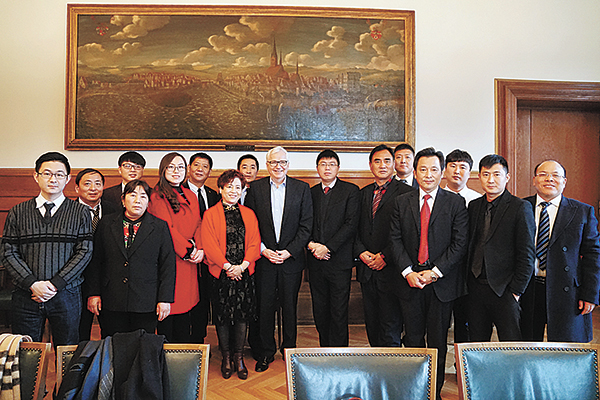 1月18日,“超級通心粉”一行抵達德國基爾市政廳,基爾市市長Todeskino先生代表德國當地政府熱情接見,并向大家介紹了基爾市目前的發展情況及水產養殖現狀。