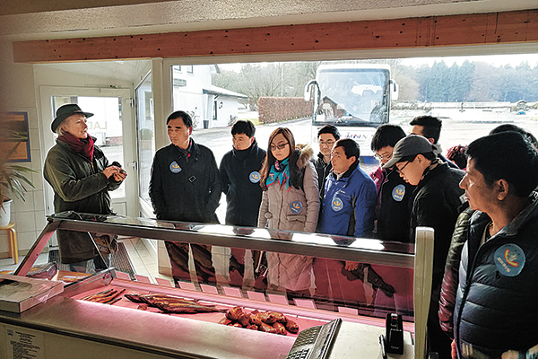 參觀德國漁場自營商店中陳列的自加工熏魚產品