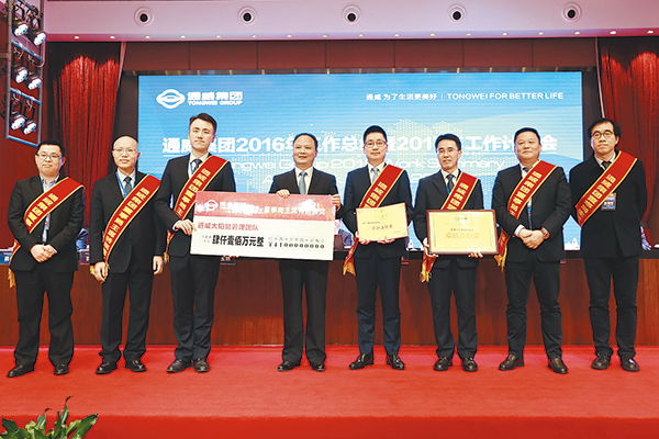 編者按:2016年1月24日,通威集團2016年工作總結(jié)暨2017年工作計劃會議隆重召開。作為會議的重要議程,會議隆重嘉獎了2016年度先進典型公司和優(yōu)秀團隊。回首2016,通威集團、股份各板塊、各公司捷報頻傳,成績斐然。生產(chǎn)、經(jīng)營、管理、企業(yè)文化等方面齊頭并進,取得了可圈可點的成果。在當(dāng)前宏觀經(jīng)濟形勢下,通威以驕人的業(yè)績,不斷刷新行業(yè)紀(jì)錄,不斷強化核心競爭力,每一步都走得踏實而穩(wěn)健,都創(chuàng)造了輝煌的歷史。優(yōu)異成績的背后,不僅有劉主席的高瞻遠矚與戰(zhàn)略指導(dǎo),更有全體員工的齊心協(xié)力、勤勉奮斗。本次的年度表彰,進一步激勵了團隊,堅定了信心!為了我們引以為豪的事業(yè),大家將帶著責(zé)任感、使命感與光榮感,激情滿懷,昂首闊步,與通威共同前進!