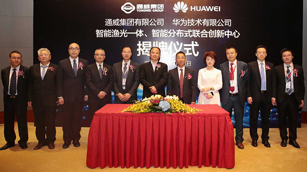 本報訊(通訊員  吳小平)3月28日,通威與華為技術有限公司在深圳正式宣布成立智能漁光一體、智能分布式聯(lián)合創(chuàng)新中心,并隆重舉行揭牌儀式。十一屆全國政協(xié)常委、通威集團董事局劉漢元主席,通威股份董事、通威集團禚玉嬌總裁,華為公司高級副總裁、網(wǎng)絡能源總裁侯金龍及雙方高管團隊出席儀式。據(jù)悉,雙方計劃在智慧漁業(yè)與智能光伏一體融合解決方案、分布式光伏等領域進行聯(lián)合研究。