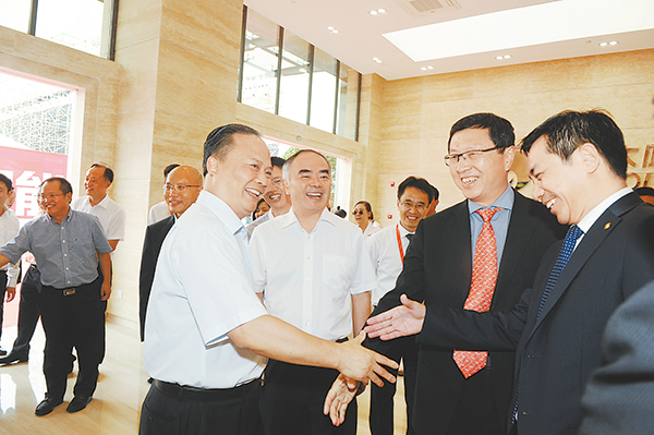 劉漢元主席與陽光電源股份董事長曹仁賢、協(xié)鑫(集團)控股副董事長兼協(xié)鑫集成總裁舒樺等親切交流