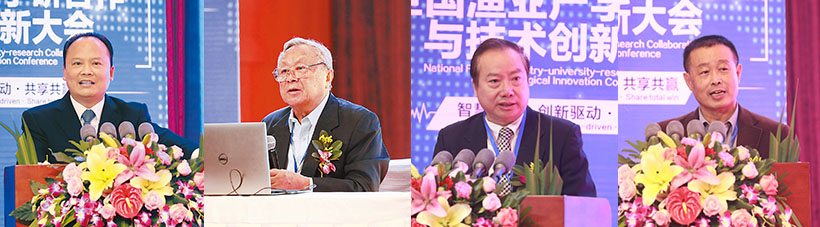 十一屆全國政協常委、通威集團董事局劉漢元主席,中國工程院院士、中國漁業物聯網與大數據產業技術創新戰略聯盟專家委員會主任林浩然,四川省水產局局長趙勇,中國農業大學校務委員會副主任、煙臺研究院院長、中國漁業物聯網與大數據產業技術創新戰略聯盟理事長傅澤田出席大會