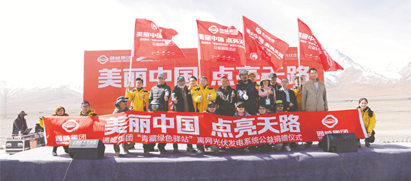 2018年5月,通威集團發起“美麗中國,點亮天路”主題活動,為“青藏綠色驛站”點亮明燈,公益捐贈三套離網光伏發電系統,照耀4500米海拔“無人區”,讓光伏改變世界!