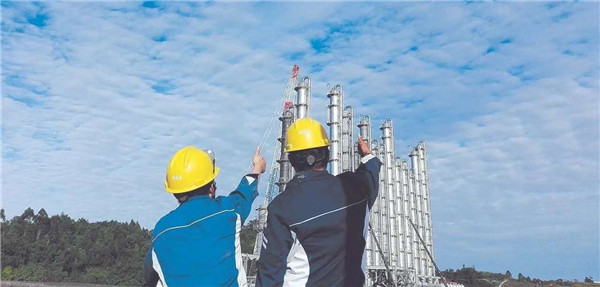 永祥新能源員工反復確認精餾塔吊裝各項標準