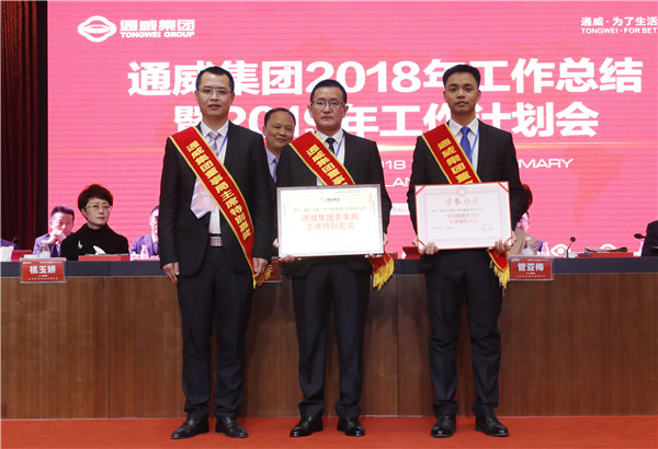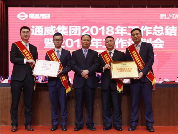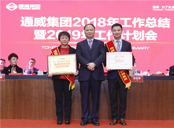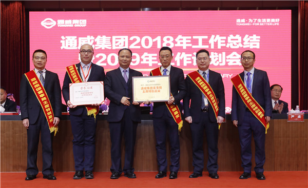 2018年,在貿易紛爭、經濟下行、行業受到沖擊、市場競爭日趨激烈的情況下,全體通威人深入貫徹劉主席“聚勢聚焦、揚長砍短”八字方針,在挑戰與機遇中主動出擊、逆勢而上、直面市場競爭,高效整合資源要素,創新發展,重點突破,精誠團結,取得了輝煌成績,贏得了行業內外的廣泛尊重,向打造“三個世界級龍頭”的宏偉目標又邁進了一大步!在通威集團2018年工作總結暨2019年工作計劃會議上,隆重揭曉了通威集團董事局主席特別嘉獎。通威(海南)水產食品有限公司飼料分公司、通威股份有限公司南昌分公司、通威股份原料體系、集團品牌傳播體系、通威光伏終端管理團隊、通威太陽能管理團隊、永祥股份管理團隊榮耀加冕,贏得在場全體同仁的熱烈掌聲。