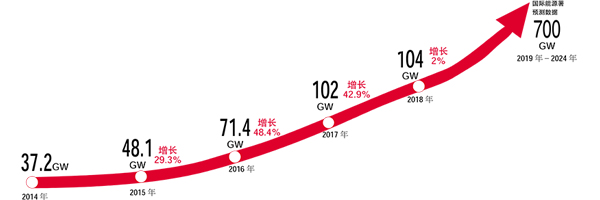 近幾年的數據統計顯示,中國光伏新增裝機量已經連續6年位居全球第一,累計裝機規模已連續4年位居全球第一。如今,光伏產業已成為我國極具國際競爭優勢的戰略性新興產業,在推動全球能源轉型中發揮著重要作用。國家能源局表示,2019年,全國光伏發電項目建設規模在5000萬千瓦左右,預計年內可建成并網的裝機容量在4000-4500萬千瓦左右,光伏發電產業發展將穩中求進。展望未來,太陽能作為“取之不盡,用之不竭”的自然資源,將大有可為。同時,在電力交易、碳排放權交易、綠色電力證書交易等政策模式不斷創新、成熟的背景下,我國光伏市場也將更加廣闊!