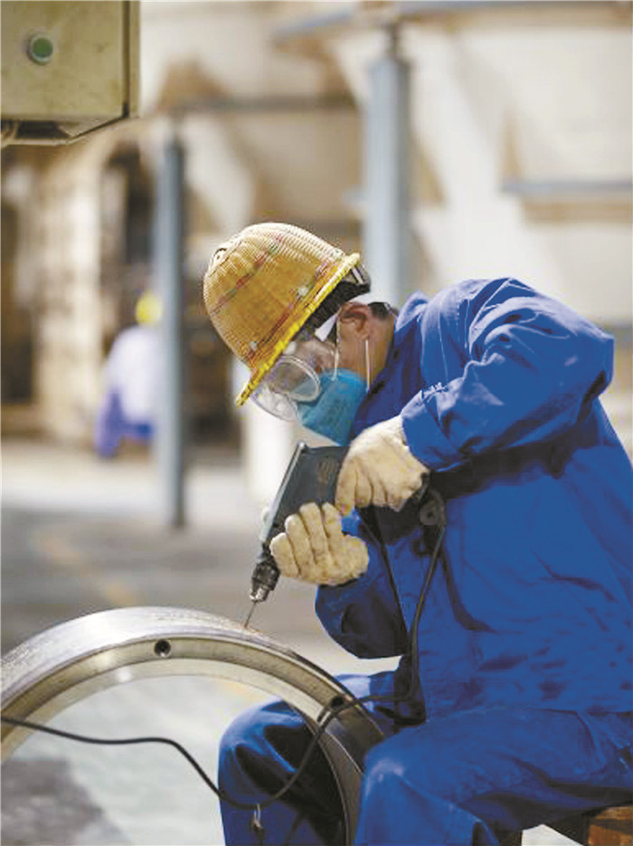 高明通威生產部制粒工孟偉仔細修復環模,將設備產能始終發揮到最佳狀態