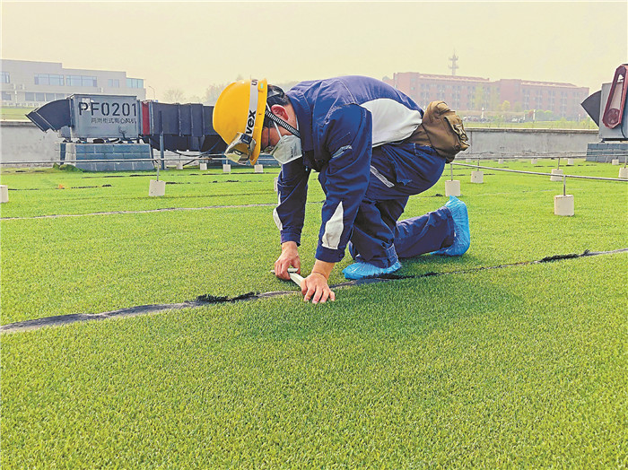 永祥新能源品管部技術員吳加勇打破固有功能的囿限,在執行中轉四位,不斷嘗試,最終用小小的訂書釘定住了樓頂草坪,守住一片綠
