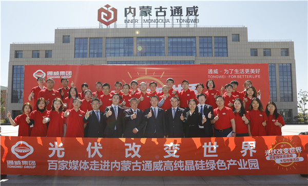 本報(bào)訊(李天宇/文)為進(jìn)一步促進(jìn)國內(nèi)權(quán)威主流媒體深度了解通威新能源產(chǎn)業(yè)發(fā)展,展現(xiàn)通威為代表的中國光伏企業(yè)的發(fā)展實(shí)力,9月18日,“百家媒體進(jìn)通威”傳播活動再次啟程。來自新華社、中國新聞社、人民網(wǎng)、光明日報(bào)、經(jīng)濟(jì)日報(bào)、中華工商時(shí)報(bào)、中國經(jīng)營報(bào)、中國能源報(bào)、能源一號、索比光伏網(wǎng)、北極星電力網(wǎng)、華夏能源網(wǎng)、國際能源網(wǎng)、每日經(jīng)濟(jì)新聞、第一財(cái)經(jīng)、21世紀(jì)經(jīng)濟(jì)報(bào)道、界面新聞、內(nèi)蒙古電視臺、包頭日報(bào)等30余家央級權(quán)威媒體、主流媒體、行業(yè)媒體、財(cái)經(jīng)媒體記者等組成的媒體團(tuán)走進(jìn)內(nèi)蒙古通威高純晶硅綠色產(chǎn)業(yè)園,領(lǐng)略全球領(lǐng)軍高純晶硅企業(yè)風(fēng)采,實(shí)地了解通威新能源產(chǎn)業(yè)發(fā)展成果,以及中國光伏企業(yè)全球領(lǐng)先的發(fā)展實(shí)力。