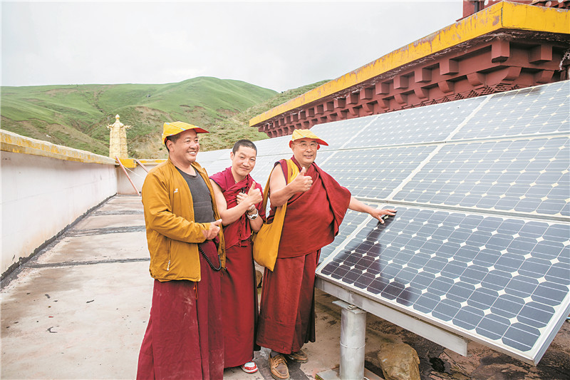 通威在理塘縣雄壩鄉若拉村建設的光伏電站,持續向周邊牧民和寺院無償提供清潔電力,有效解決了當地用電難的問題