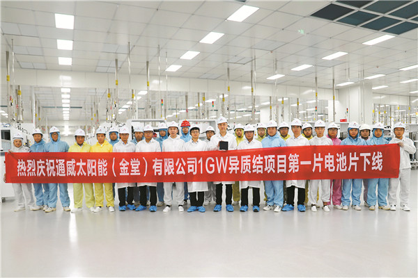 通威太陽(yáng)能1GW異質(zhì)結(jié)電池項(xiàng)目第一片電池片下線
