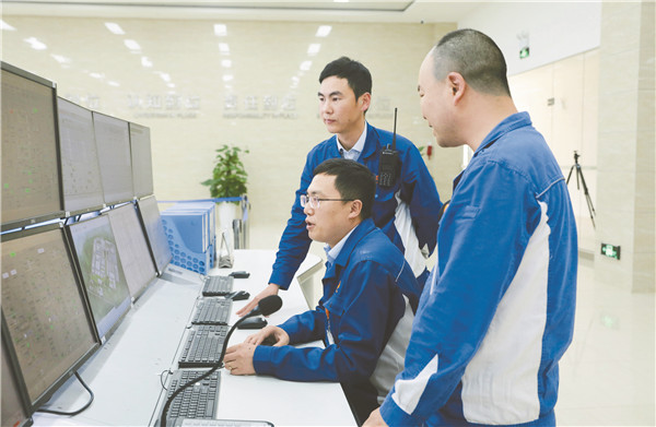 永祥股份副總經理兼永祥新能源常務副總經理羅周查看公司生產運行數據