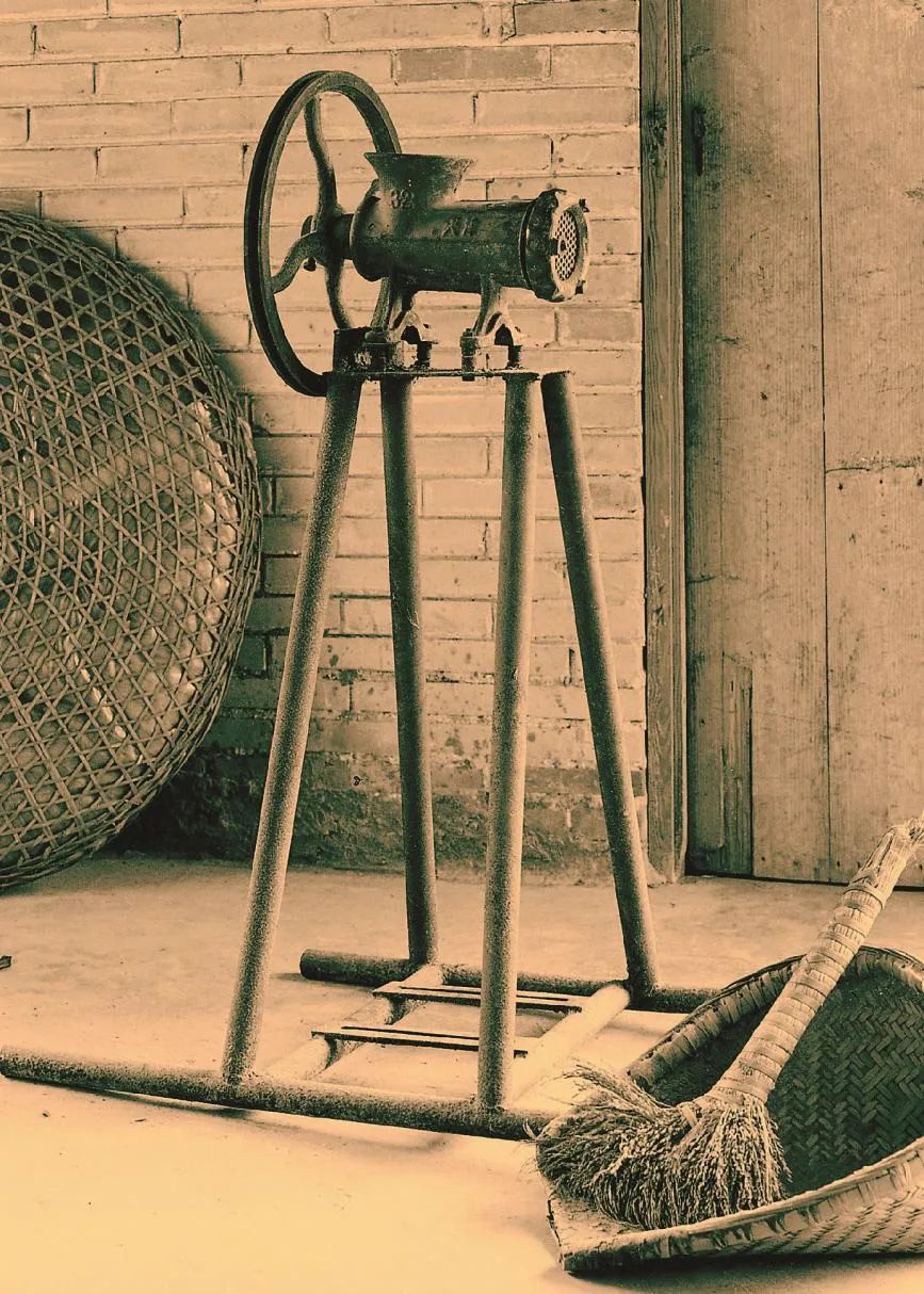 劉漢元主席試驗渠道金屬網箱養魚時用于生產飼料的絞肉機