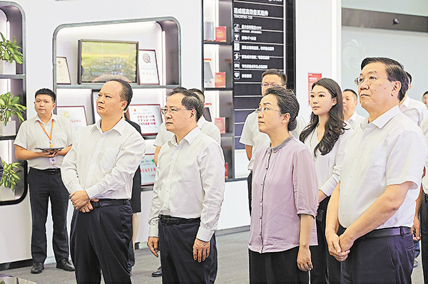 隨后,金壯龍部長一行深入通威太陽能智能制造生產車間,查看車間自動化、無人化生產流程,了解智能化生產模式及精細化現場管理,并詳細詢問通威在工業互聯網應用、產線智能升級、數字科技應用、技術研發創新等方面的情況。