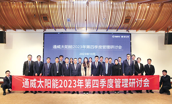 10月13日,通威太陽(yáng)能成功舉行2023年四季度管理研討會(huì)。通威股份董事長(zhǎng)、CEO劉舒琪,通威太陽(yáng)能總經(jīng)理周華等出席會(huì)議。劉舒琪董事長(zhǎng)強(qiáng)調(diào),2024年公司將面臨硅料、硅片、電池產(chǎn)能過(guò)剩的嚴(yán)峻市場(chǎng)挑戰(zhàn),希望電池端在今年第四季度及2024年工作中,進(jìn)一步加強(qiáng)內(nèi)部溝通與協(xié)作,在降本增效的同時(shí),堅(jiān)守質(zhì)量口碑,及時(shí)服務(wù)客戶,提升品牌形象,并持續(xù)保持與行業(yè)的動(dòng)態(tài)對(duì)標(biāo),在產(chǎn)品轉(zhuǎn)型同時(shí)重點(diǎn)關(guān)注效率提升。她鼓勵(lì)團(tuán)隊(duì)繼續(xù)發(fā)揚(yáng)不斷追求卓越的奮斗精神,堅(jiān)定信心,沉著應(yīng)對(duì)市場(chǎng)挑戰(zhàn),繼續(xù)保持行業(yè)領(lǐng)先的競(jìng)爭(zhēng)力。
