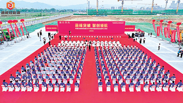 2023年3月,云南通威二期20萬噸高純晶硅項目開工,僅用66天完成全部18座精餾塔裝置吊裝,塔件焊接工作一次合格率達99.5%,吊裝工作一次就位;10月,項目主體結構完成封頂,進入收尾階段。這是高純晶硅領域全球首個20萬噸級項目。項目建成后,云南通威高純晶硅產能將超過25萬噸,成為全球單體生產規模最大的基地之一。