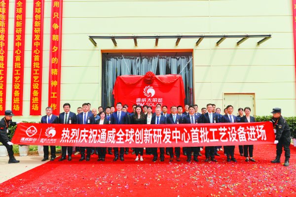 4月26日,通威全球創新研發中心首批工藝設備進場儀式在通威太陽能雙流公司隆重舉行。通威股份董事長、CEO劉舒琪出席并講話,通威股份光伏首席技術官邢國強博士等出席,通威股份光伏技術部核心骨干代表,通威太陽能管理團隊代表共同見證了這一重要時刻。