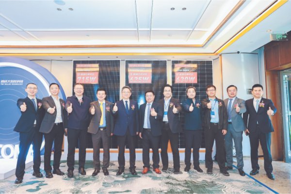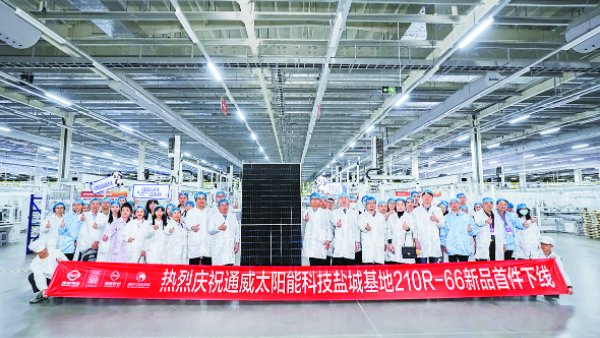 在重磅嘉賓、參會(huì)媒體的見證下,通威太陽(yáng)能科技鹽城基地成功下線首件TNC-G12R-66版型組件。這是繼南通基地TNC-G12R-48版型組件下線后,通威正式實(shí)現(xiàn)了TNC-G12R大矩形組件的全面供應(yīng)。
