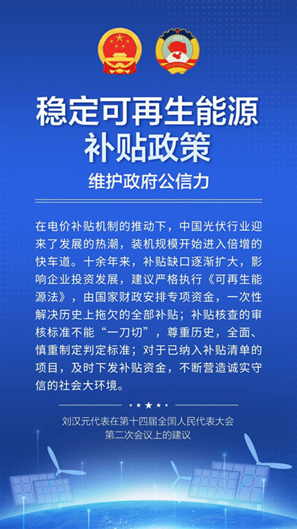 經(jīng)濟(jì)日報(bào) | 劉漢元代表:穩(wěn)定可再生能源補(bǔ)貼政策 促進(jìn)行業(yè)健康可持續(xù)發(fā)展