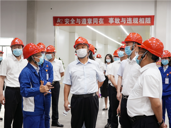 劉漢元主席一行首先來到永祥新能源二期生產(chǎn)現(xiàn)場,對變電站、回收、冷氫化、公輔、精餾、還原、后處理等工段進(jìn)行了詳細(xì)視察,隨后在光伏科技集控中心、A1生產(chǎn)區(qū)域和A2機加區(qū)域詳細(xì)了解了生產(chǎn)運行情況。每到一處,劉主席與現(xiàn)場管理人員、工作人員親切交流,對新能源二期精品工程表示肯定,指出那么短的時間一次性投產(chǎn),設(shè)備連續(xù)穩(wěn)定運行,一次出爐就是特級品,精餾開車幾十個小時,品質(zhì)就超過我們原有的系統(tǒng)。用什么方式來評價我們自己都不過分!