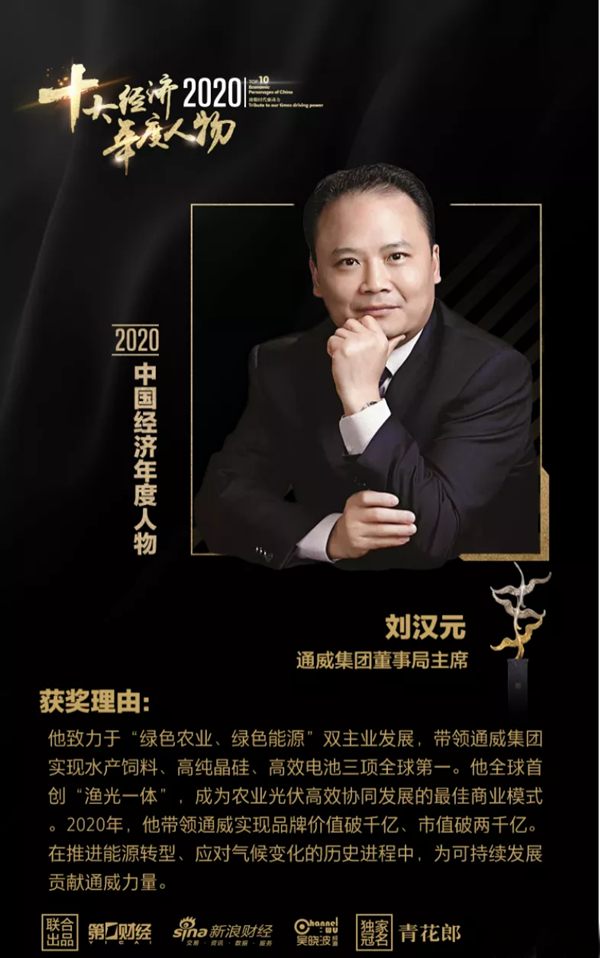 通威集團董事局劉漢元主席榮膺“2020十大經濟年度人物”殊榮