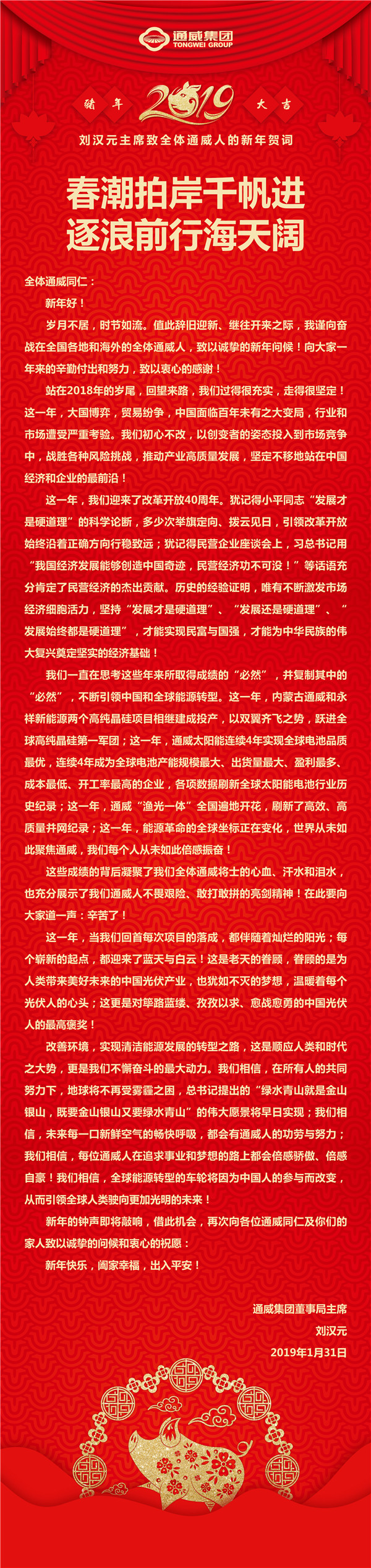 劉漢元主席致全體通威人的新年賀詞!