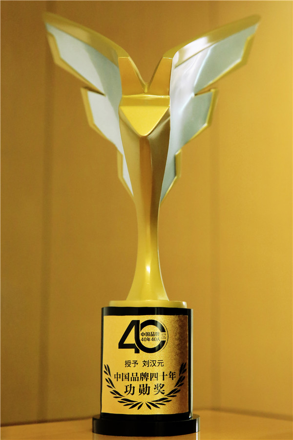 劉漢元主席榮膺“中國(guó)品牌40年40人”證書(shū)及獎(jiǎng)杯
