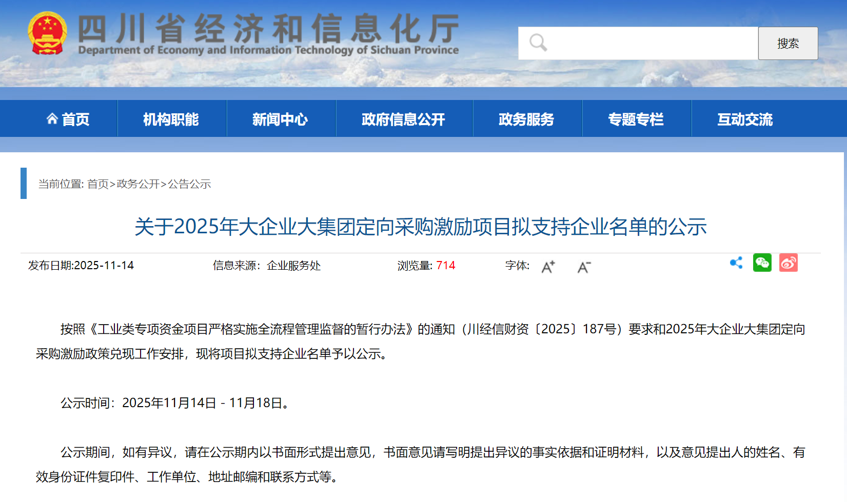 通合新能源(金堂)有限公司榮登四川省2025年大企業定向采購激勵項目榜單