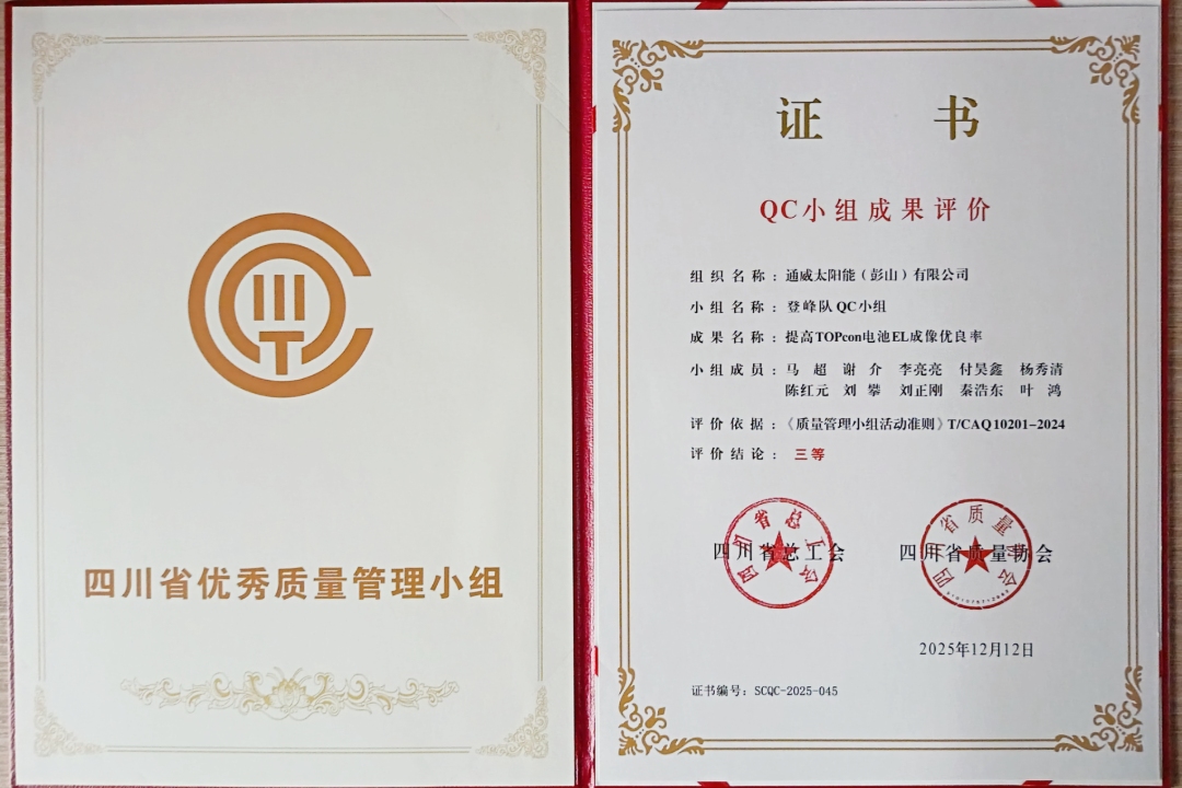 品質鑄就信賴:通威太陽能(彭山)有限公司連獲三項質量榮譽