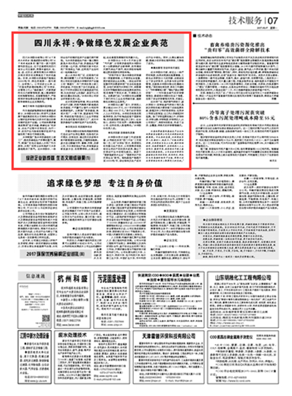 中國環(huán)境報:四川永祥爭做綠色發(fā)展企業(yè)典范