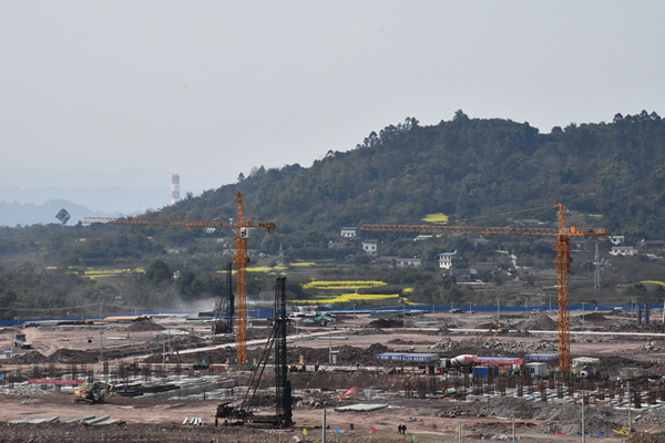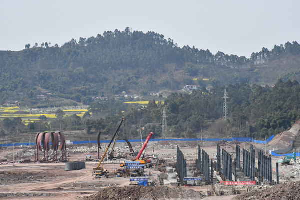 陽光穿過群山,透過薄霧撒在數百畝的園區工地上,多臺塔吊的搖臂正來回忙碌,貨車來來回回,一排排建筑已經拔地而起初具雛形……3月23日上午,位于五通橋區的四川永祥5萬噸高純晶硅及配套新能源項目(以下簡稱永祥“5+2”)一期建設現場一派蓬勃忙碌、規范有序的景象。