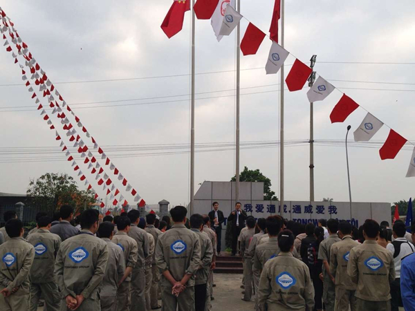 通威股份副總裁兼海外二區(qū)總裁洪睿出席海陽通威升旗儀式