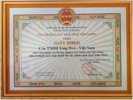 越南通威獲“2014年度稅務(wù)政策和納稅義務(wù)執(zhí)行優(yōu)秀企業(yè)”稱號