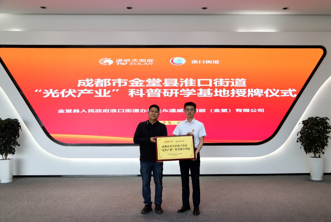 通威太陽能(金堂)有限公司獲金堂縣淮口街道“光伏產業”科普研學基地授牌