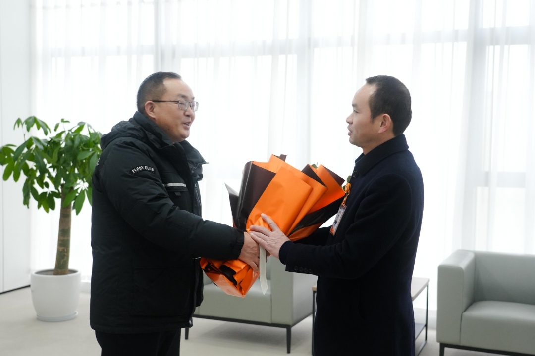 金堂縣總工會黨組書記、副主席岳培勇一行到訪通威太陽能(金堂)有限公司開展新春慰問活動