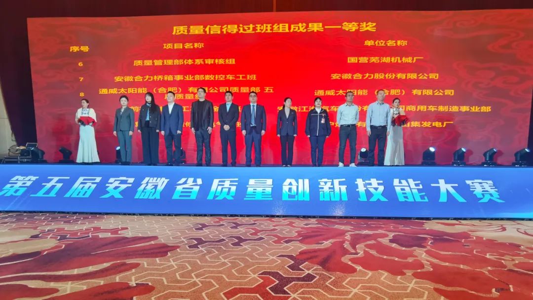 通威太陽能科技合肥基地榮獲第五屆安徽省質量創新技能大賽質量信得過班組成果一等獎