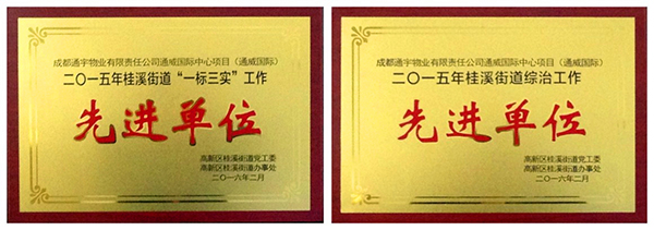 通威國際中心獲2015年綜治及“一標三實”工作先進單位兩項殊榮