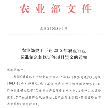 通威股份檢測中心成功中標國家農業部標準制定項目