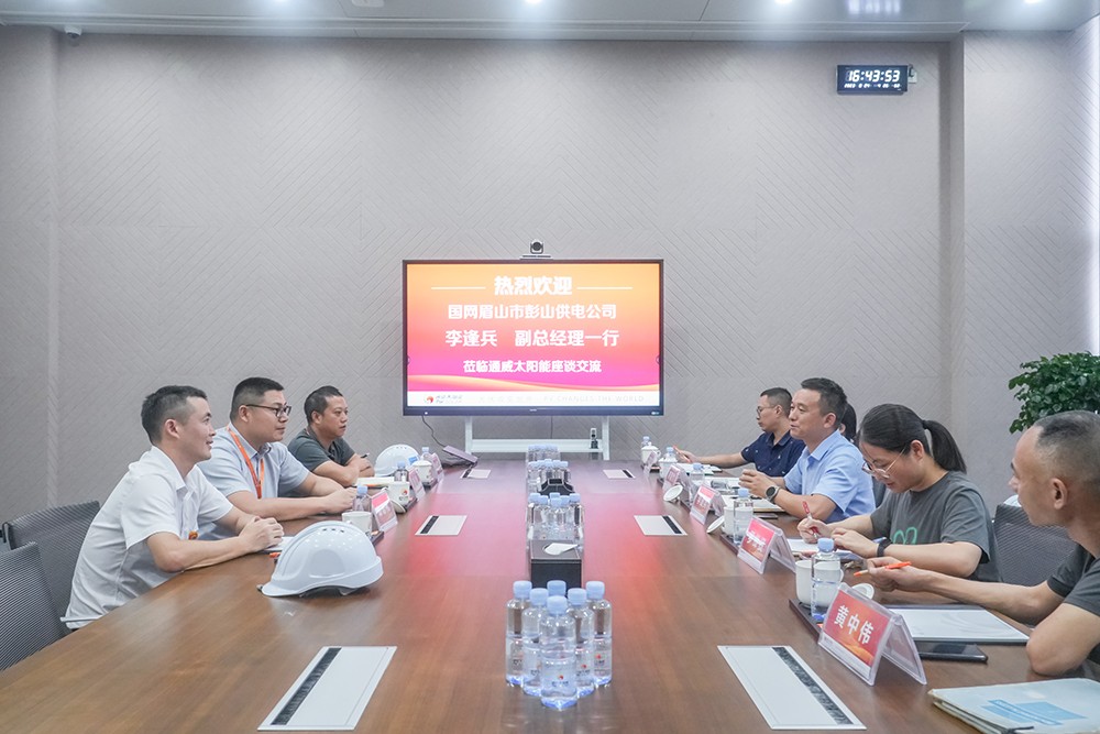 國網眉山市彭山供電公司副總經理李逢兵一行蒞臨通威太陽能彭山基地參觀調研和座談交流