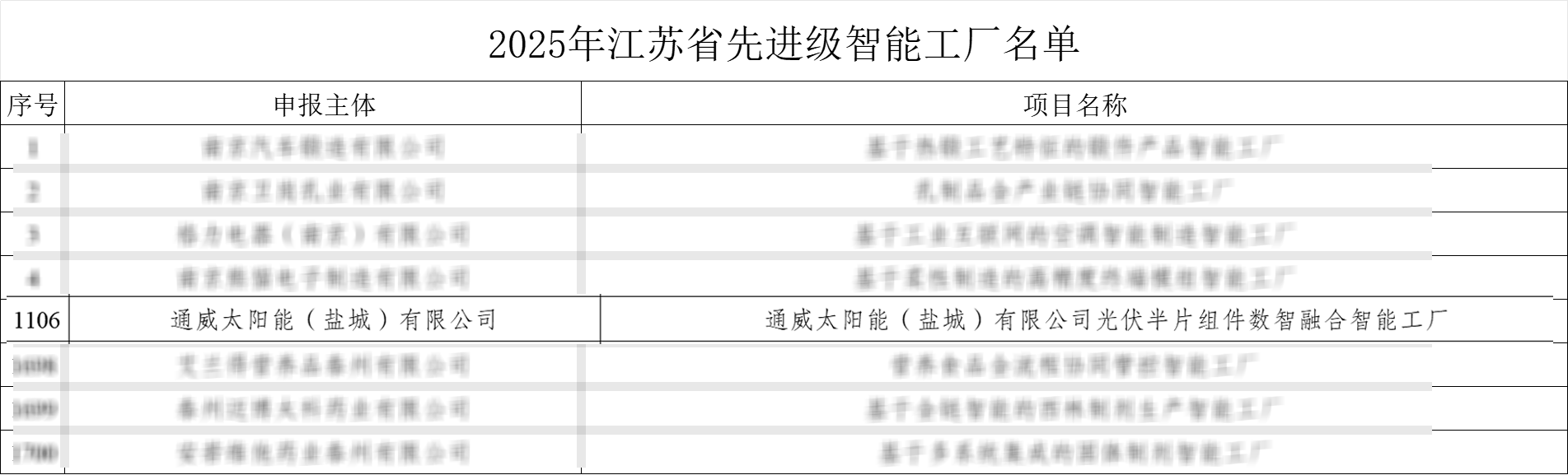 通威太陽能科技鹽城基地入選2025年江蘇省先進級智能工廠名單