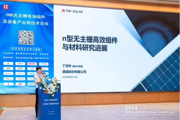 8月15日,由光伏行研、常州市光伏行業協會聯合主辦的“0BB無主柵電池組件及設備產業鏈技術論壇”在江蘇無錫召開。會議聚集了0BB無主柵電池組件上中下游全產業鏈的行業專業和資深從業者,針對0BB無主柵技術的熱點話題、關鍵技術、供應鏈、未來趨勢等展開了深入探討。通威光伏技術中心部長助理丁常林受邀參會并作專題演講。
