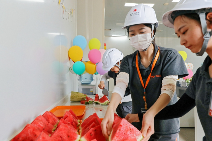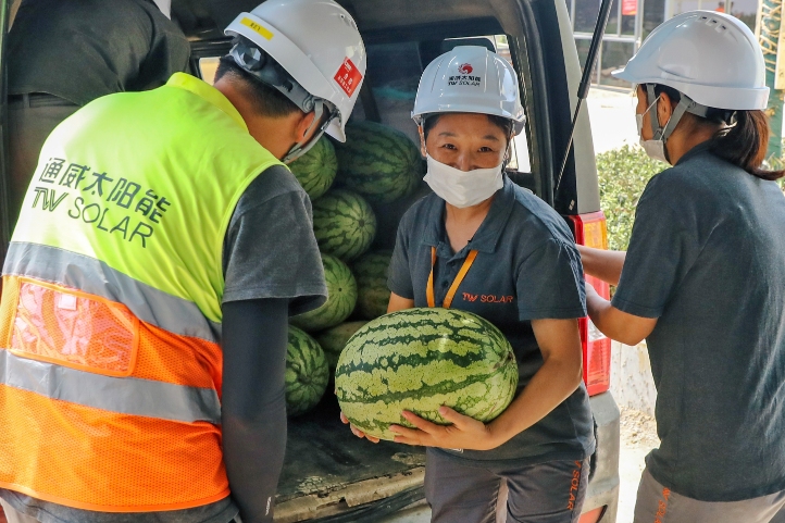 當前,通威太陽能(成都)有限公司五期項目建設如火如荼。為向堅守在一線的建設者們表達敬意,送去關懷,8月7日,成都公司工會與行政部聯合開展五期專項慰問活動。