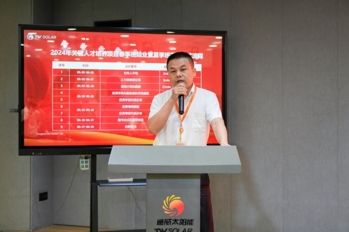 聚焦關(guān)鍵人才培養(yǎng),夯實人才梯隊建設(shè),8月1日,通威太陽能(成都)有限公司成功舉辦2024年關(guān)鍵人才培養(yǎng)項目春季班結(jié)業(yè)暨夏季班開班儀式,各業(yè)務部門負責人、春季班優(yōu)秀學員及導師,以及即將踏上新征程的夏季班學員共計80余人共同見證了這一重要時刻。