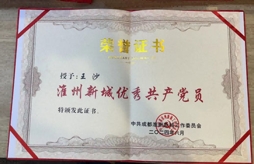 王沙同志榮獲“淮州新城優秀共產黨員”