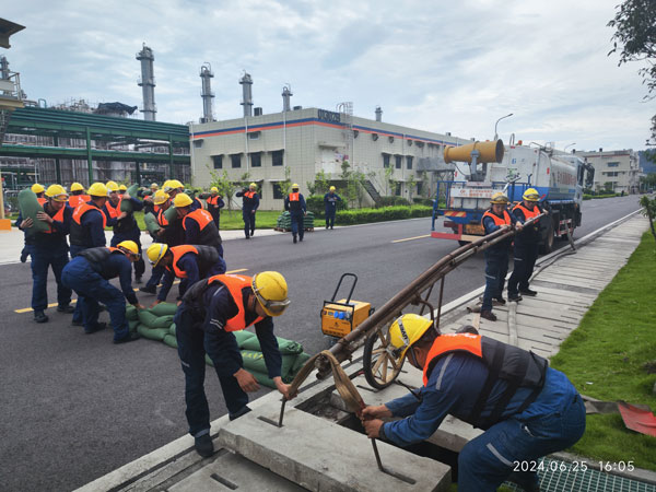 為確保員工的生命安全和企業的穩定運行,6月25日,永祥新能源組織開展防洪防汛專項應急演練,永祥新能源副總經理涂大勇,安全環保總監兼安全環境部長袁旭丹,設備動力部長何鵬飛,品管部長吳作木,人行部副部長程鳳濤出席并參演。