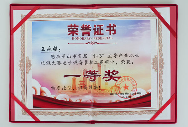 通威太陽能(彭山)有限公司員工榮獲眉山市首屆“1+3”主導(dǎo)產(chǎn)業(yè)職業(yè)技能大賽電子設(shè)備轉(zhuǎn)接賽第一名