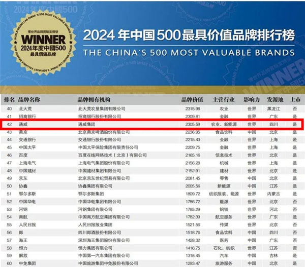 2305.59億元!通威品牌價值再創(chuàng)新高,繼續(xù)蟬聯(lián)全球水產(chǎn)和光伏兩大行業(yè)第一