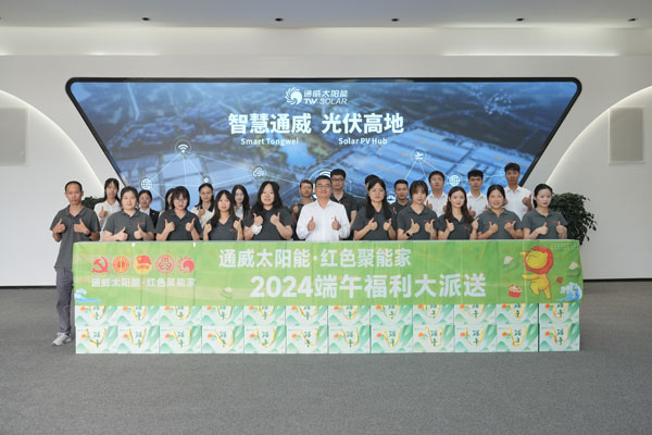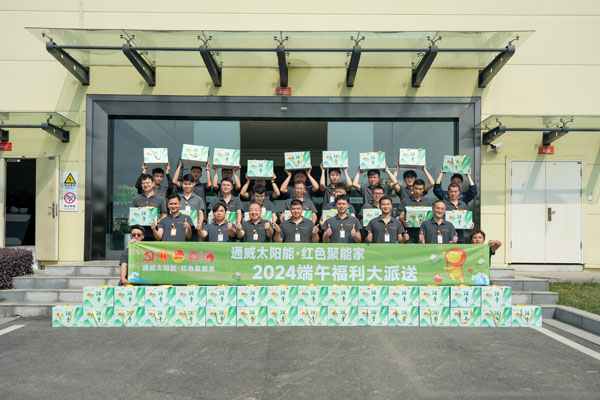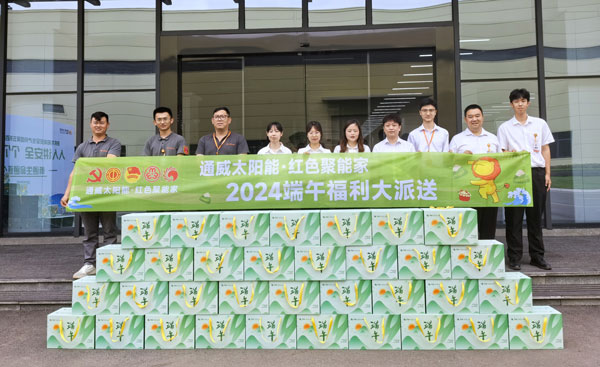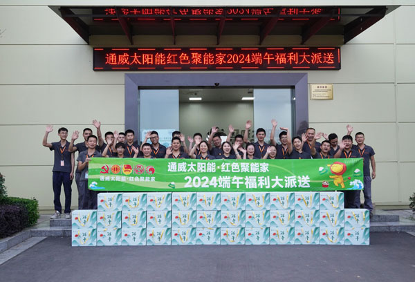 榴裙萱黛增顏色,艾酒蒲漿記歲年。在端午佳節(jié)來臨之際,為弘揚(yáng)傳統(tǒng)文化,感謝全體員工為公司發(fā)展付出的辛勤努力,6月3日至5日,通威太陽能紅色聚能家在各公司有序開展端午福利大派送活動,為廣大職工送去了滿滿的關(guān)愛和濃濃的節(jié)日祝福。