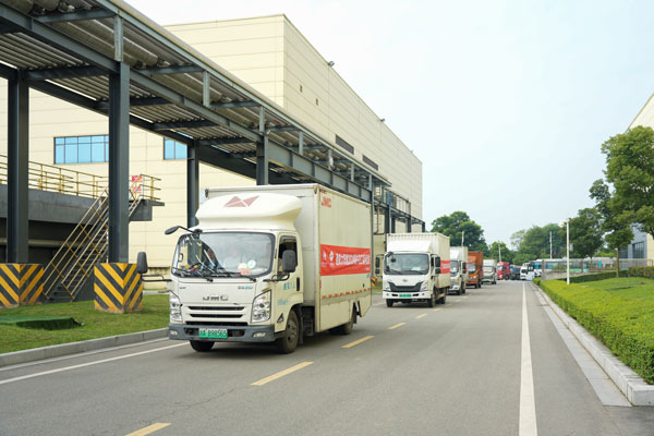 滿載禮盒的車隊(duì)緩緩駛?cè)雸@區(qū)