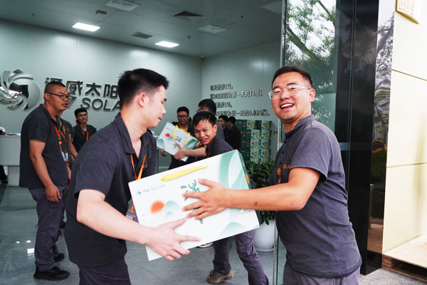 通威太陽能始終高度重視對員工的人文關(guān)懷,每逢傳統(tǒng)節(jié)日都會為員工們發(fā)放貼心、實(shí)惠的福利禮品,以實(shí)際行動讓員工體會到公司對每個人的關(guān)心和關(guān)愛,創(chuàng)造融洽溫馨的工作氛圍,用實(shí)際行動激發(fā)員工“為了生活更美好”的奮斗動力。